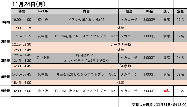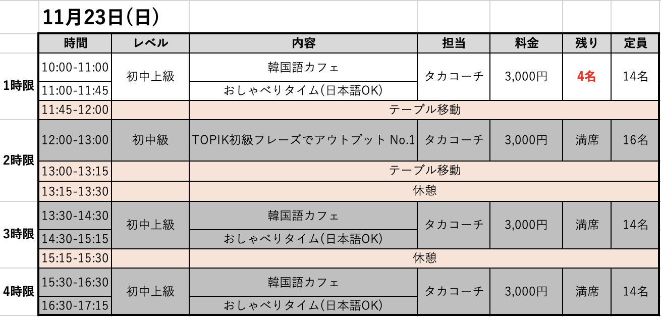 週末にサクッと留学気分を味わいたい方、留学前の肩慣らしとしてどっぷり韓国語に浸りたい方はぜひ遊びに来てください☺️
