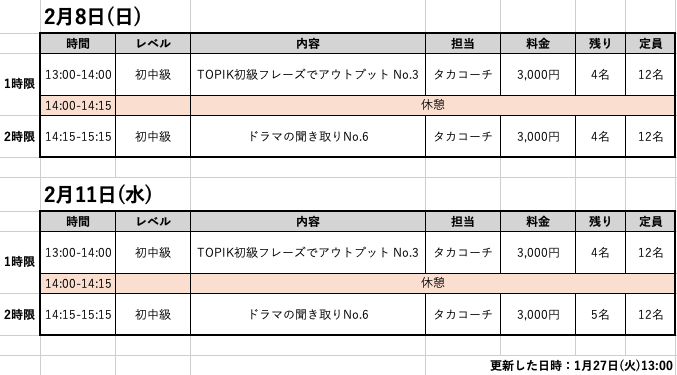 週末にサクッと留学気分を味わいたい方、留学前の肩慣らしとしてどっぷり韓国語に浸りたい方はぜひ遊びに来てください☺️